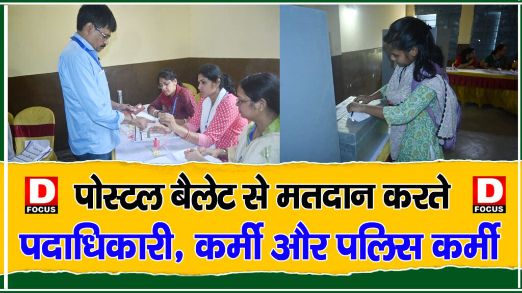 अपने कर्तव्य पर रहते हुए अपने मत का प्रयोग किया। यह नजारा सेक्टर 2/C का है जहाँ पदाधिकारी, कर्मी तथा पुलिस कर्मी पोस्टल वॉलेट से मतदान कर रहे हैं।