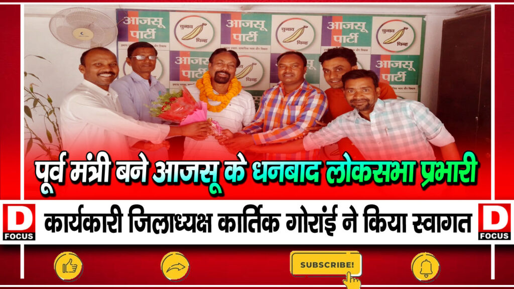 धनबाद लोक सभा चुनाव में पार्टी द्वारा प्रत्याशी घोषित होते ही लोग अपने अपने स्तर से विभिन्न इकाईयो के माध्यम से चुनाव प्रचार और जनसंपर्क अभियान में जुट गए हैं। एनडीए और भाजपा प्रत्याशी ढुलु महतो को प्रत्याशी बनाए जाने पर चुनावी माहौल अभी से गरम हैं। चंदनकियारी के पूर्व मंत्री उमाकांत रजक को धनबाद लोक सभा का प्रभारी बनाये जाने पर रविवार को आजसु के जिला कार्यकारी अध्यक्ष कार्तिक गोरांई के नेतृत्व में बेड़ानी मोड़ स्थित आजसु कार्यालय में अनेको समर्थको के साथ श्री रजक को फुल माला व गुलदस्ता देकर भव्य रूप से स्वागत किया गया।
