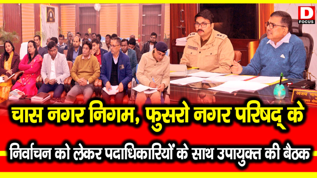 बैठक में चास नगर निगम क्षेत्र एवं फुसरों नगर परिषद निर्वाचन से संबंधित सभी प्रशासनिक, तकनीकी एवं सुरक्षा व्यवस्थाओं पर विस्तार से चर्चा की गई।