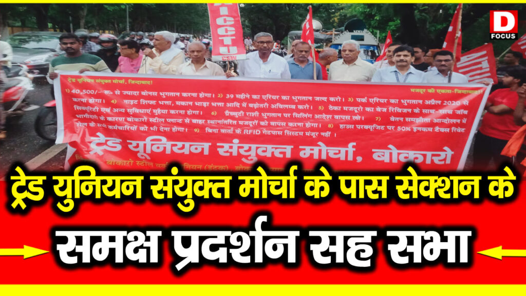 ट्रेड यूनियन संयुक्त मोर्चा, बोकारो द्वारा मेन गेट पास सेक्शन के समक्ष एक मजदूर प्रदर्शन सह सभा का आयोजन आई डी प्रसाद की अध्यक्षता में संपन्न हुई।