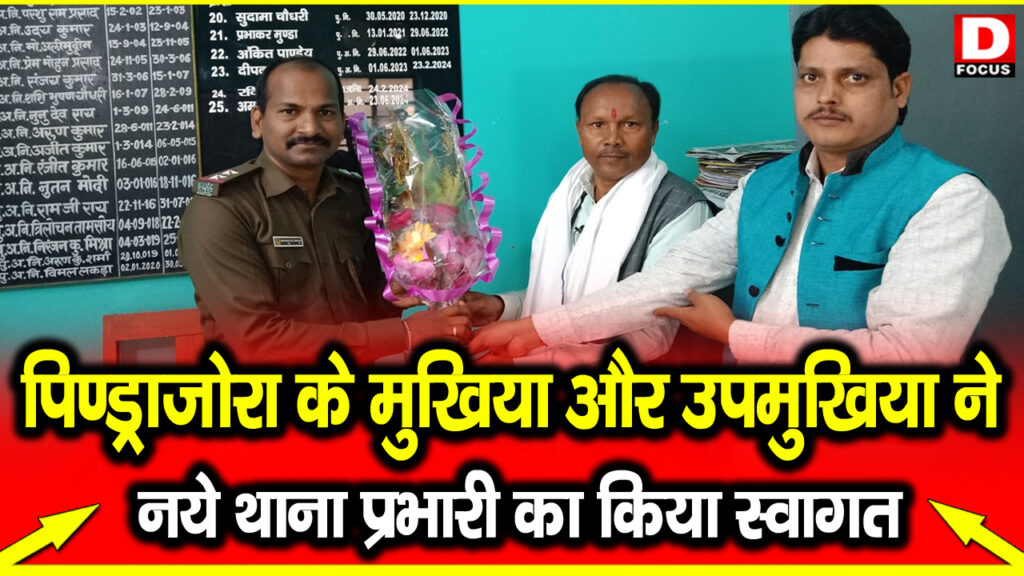 पिंड्राजोरा के नए थाना प्रभारी अभिषेक कुमार रंजन का स्थानीय मुखिया उपमुखिया ने किया स्वागत