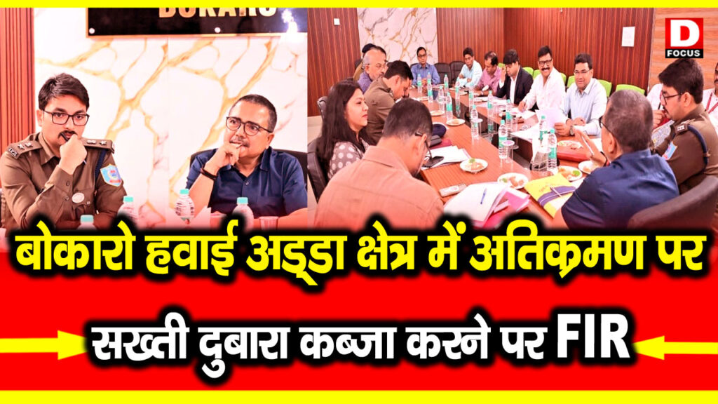बोकारो एयरपोर्ट से सटे दुंडीबाग बाजार क्षेत्र में अतिक्रमण हटाए गए स्थानों पर दोबारा कब्जा करने वालों के विरुद्ध सीधे एफआईआर दर्ज करने का निर्देश दिया गया है। यह निर्णय बोकारो परिसदन सभागार में उपायुक्त (डीसी) श्री अजय नाथ झा की अध्यक्षता में आयोजित समीक्षा बैठक में लिया गया, जिसमें एयरपोर्ट से जुड़े विभिन्न विकास एवं सुरक्षा कार्यों की प्रगति की समीक्षा की गई।