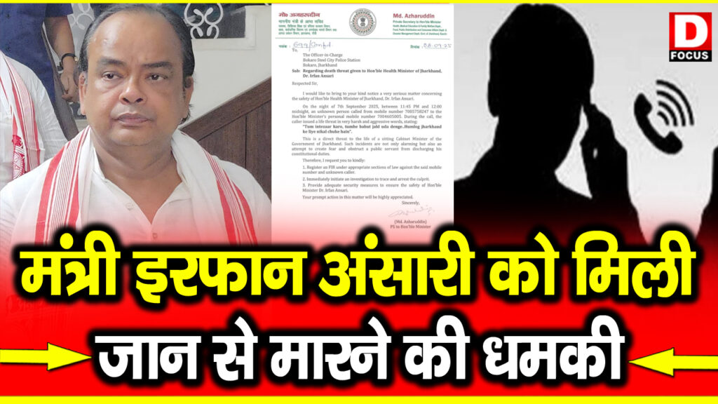 पूरी घटना के बारे में बताते चले कि झारखंड के स्वास्थ्य एवं आपदा प्रबंधन मंत्री डॉ इरफान अंसारी को एक बार फिर जान से मारने की धमकी मिली है। रविवार देर रात बोकारो सर्किट हाउस में ठहरने के दौरान उन्हें एक अज्ञात मोबाइल नंबर- 7005758247 से कॉल आया। मंत्री के अनुसार कॉल करने वाले ने पहले अपशब्दों का इस्तेमाल किया फिर देख लेने का धमकी दिया और जल्द ही उड़ा देने की बात कही मोबाइल फोन के जरिए की गई। धमकी भरे लहजे में कहा गया- तुम बस इंतजार करो… तुम्हें बहुत जल्द उड़ा देंगे। इस घटना की जानकारी मिलते ही मंत्री ने तत्काल पुलिस को सूचित किया। सुरक्षा एजेंसियां अब अलर्ट मोड में आ गई हैं। पूरे मामले की जांच बोकारो पुलिस द्वारा तेज कर दी गई है।