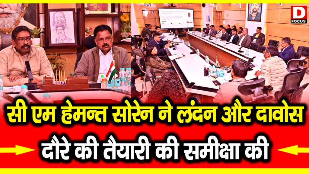 मुख्यमंत्री हेमन्त सोरेन ने आज कांके रोड, रांची स्थित मुख्यमंत्री आवासीय कार्यालय में अधिकारियों के साथ 18 से 26 जनवरी 2026 तक प्रस्तावित दावोस एवं यूनाइटेड किंगडम (लंदन) दौरे की तैयारियों को लेकर समीक्षा बैठक की। बैठक के दौरान मुख्यमंत्री एवं अधिकारियों के बीच दौरे से संबंधित विभिन्न महत्वपूर्ण पहलुओं पर विस्तृत चर्चा हुई।