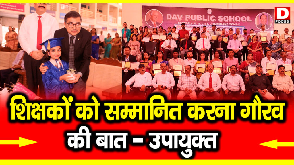 शिक्षक को सम्मानित करना हमारे लिए गौरव की बात है। शिक्षक समाज के मार्गदर्शक होते हैं और उनके योगदान को कभी भुलाया नहीं जा सकता। विद्यार्थी जब अपने शिक्षक का सम्मान करते हैं, तभी राष्ट्र – विश्व का भविष्य मजबूत बनता है। आज जिला का उपायुक्त नहीं, बल्कि एक विद्यार्थी शिक्षकों को सम्मानित करने आया है। उक्त बातें उपायुक्त श्री अजय नाथ झा ने कहीं। वह शनिवार को बोकारो स्टील सिटी के सेक्टर-04 स्थित डीएवी पब्लिक स्कूल सभागार में डॉ. राधाकृष्णनन सहोदय स्कूल कॉम्प्लेक्स द्वारा गुरू वशिष्ठ अवार्ड 2025 के आयोजन समारोह में शिक्षकों को संबोधित करते हुए कहा।