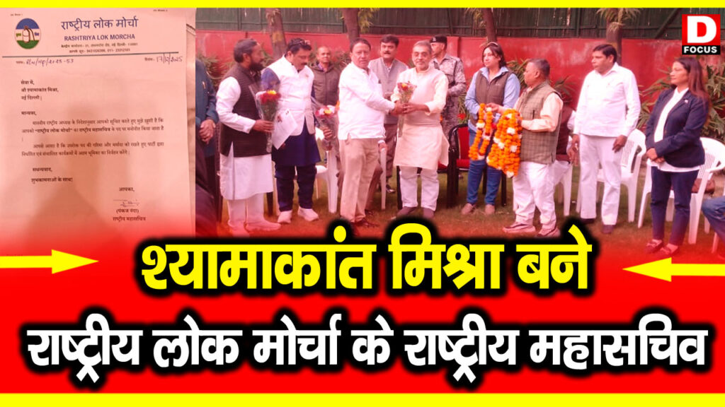 श्यामाकांत मिश्रा बने राष्ट्रीय लोक मोर्चा के राष्ट्रीय महासचिव राष्ट्रीय लोक मोर्चा के राष्ट्रीय महासचिव पंकज नंदा ने इस बाबत पत्र जारी किया है पत्र के माध्यम से राष्ट्रीय महासचिव बनाए जाने की सूचना देते हुए उनसे उम्मीद की गई है कि पार्टी द्वारा निर्धारित एवं संचालित कार्यक्रमों में वे इस नए दायित्व में अहम भूमिका का निर्वहन करेंगे…