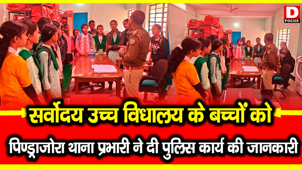 सर्वोदय उच्च विद्यालय के बच्चों ने पिंड्राजोरा थाना का भ्रमण किया इस मौके पर खुद पिंडराजोरा थाना के प्रभारी अभिषेक कुमार रंजन ने सर्वोदय उच्च विद्यालय के बच्चों को थाना परिसर एवं कार्यालय का अपने सहयोगियों के साथ भ्रमण कराया एवं पुलिस विभाग से जुड़े कार्यों के संबंध में विद्यार्थियों को विस्तार से जानकारी दी…