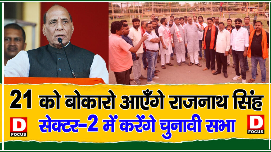 धनबाद लोकसभा क्षेत्र के बोकारो विधानसभा में चुनावी जनसभा कार्यक्रम के दौरान 21 मई को सेक्टर 2 के दुर्गा पूजा मैदान मे देश के रक्षा मंत्री राजनाथ सिंह का आगमन हो रहा है। राजनाथ सिंह भाजपा एनडीए प्रत्याशी दुलु महतो के पक्ष में बोकारो की आम जनता से वोट का अपील करेंगे। धनबाद लोकसभा में भाजपा के पक्ष में जनता ने अपना विश्वास जताया है ।धनबाद से फिर एक कमल दिल्ली के संसद मे बैठने को मिलेगा। जिसकी तैयारी समीक्षा हेतु धनबाद लोकसभा प्रभारी सुरेश साहू , लोकसभा संयोजक सतेंद्र कुमार, विधानसभा संयोजक बोकारो विधायक बिरंची नारायण, जिला अध्यक्ष जयदेव राय, मिहीर सिंह चौधरी,संजय त्यागी,बीरभद्र सिंह, विनोद कुमार, अभय कुमार गोलू,राजू मालाकार आदि मौजूद रहे।