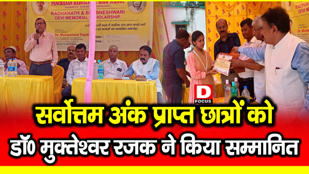 झारखंड ही नहीं अपितु भारत के लब्ध प्रतिष्ठित किडनी रोग विशेषज्ञ डॉक्टर मुक्तेश्वर रजक द्वारा सतनपुर ग्राम स्थित पंचानन राजबाला प्लस टू उच्च विद्यालय में 10वीं एवं 12वीं कक्षा में सर्वोत्तम अंक प्राप्त करने वाले मेधावी विद्यार्थियों को राधानाथ भुवनेश्वरी देवी मेमोरियल छात्रवृत्ति सम्मान से सम्मानित किया गया यह सम्मान प्रत्येक वर्ष 10वीं एवं 12वीं कक्षा के तीनों संकायों में प्रथम द्वितीय एवं तृतीय स्थान प्राप्त करने वाले विद्यार्थियों को दिया जाएगा आपको बताते चले कि डॉक्टर मुक्तेश्वर रजक का जन्म भी बोकारो जिला के सतनपुर ग्राम में ही हुआ है एवं उनकी प्रारंभिक शिक्षा भी पंचानन राजबाला स्कूल से ही हुई थी डॉक्टर रजक का मानना है कि गांव में रहने वाले बच्चे भी पढ़ने लिखने में बेहद मेधावी होते हैं उन्हें मात्र शिक्षा के लिए प्रेरित करने की आवश्यकता है डॉक्टर रजक की सोच है कि कोई भी मेधावी विद्यार्थी आर्थिक तंगी के कारण अपनी पढ़ाई अधूरी नहीं छोड़े और उनके बीच एक समावेशी प्रतिस्पर्धा हो जिससे शिक्षा के क्षेत्र में विद्यार्थी आगे बढ़े और सतनपुर गांव का विकास हो इस सम्मान समारोह में डॉक्टर रजक के अग्रज बंशीधर रजक बांके बिहारी रजक के अलावा विद्यालय के प्राचार्य सेवादास हेंब्रम अरुण कुमार मिश्रा पवन तिवारी समेत कई गरिमामयी लोगों की उपस्थिति रही..