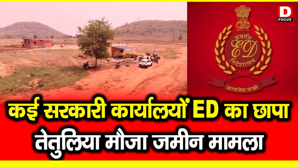 बोकारो के ततुलिया वन भूमि मामला को लेकर ईडी रांची और बोकारो में छापेमारी कर रहा है. सबसे ज्याद छापेमारी बोकारो शहर में हो रही है. पुख्ता सूत्रों ने बताया कि बोकारो के एसी कार्यालय, चास स्थित सीओ कार्यालय, रजिस्ट्रार आफिस और डीएफओ कार्यालय में छापेमारी का काम चल रहा है.
